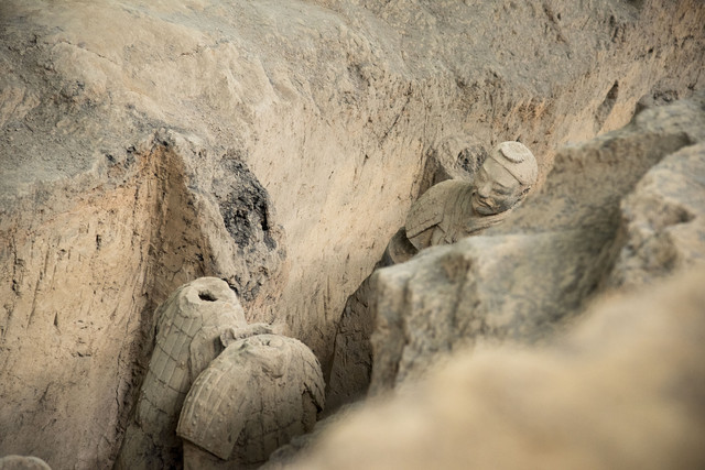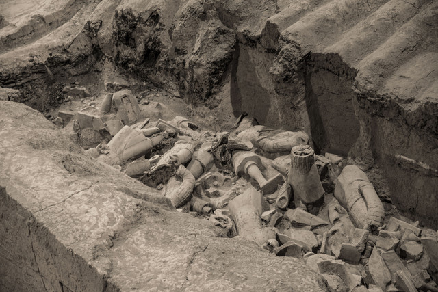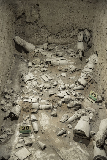 2号坑3号坑就小很多,大部分未做修复,保留了出土时的样子。以车马为主,兵士较少。