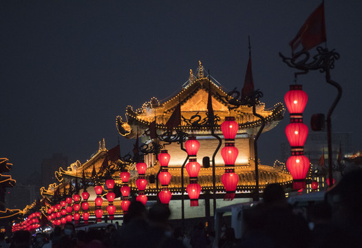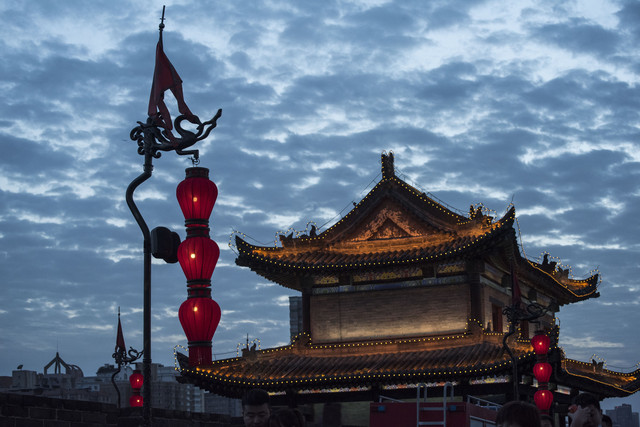剧院出来已经是傍晚,查了一下发现古城墙有开放时间限制,好像是6点吧(记不清了QAQ),反正时间已经很紧急,公交太慢打了个车,最后还好赶上了。城墙夜景灯很漂亮,不过整体没有网上说的那么好看。尤其黑漆漆的人又多,一定要小心脚下,因为城砖不平整。