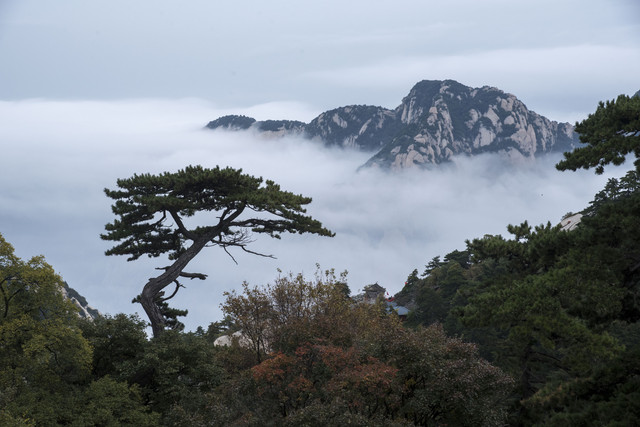 好在一路的风景激励着我们,到达西峰时天边云海美不胜收,脚下青山层林尽染。如果再晚来两周,秋景应该会更美,但至此已无憾。