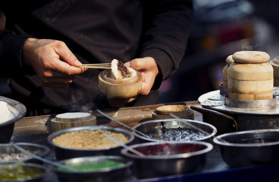 回民街熙熙攘攘,不算长,在街头买了块镜糕,镜糕的味道很不错,朋友买了甑糕也很好吃,不是很甜。