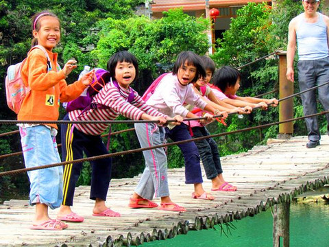 记者随车友们分别探访了村中的105、108、113岁的三位老人,前两位是老婆婆,后一位是113岁的老爷爷。车友们递给老人红包后,并祝福老人健康长寿,老人高兴地同车友合影留念。归来时正好遇到几位刚下学的孩子们,她们在小桥上玩耍,晃动着吊桥,让过桥的车友无不为之惊恐万状,其童真的调皮、无畏给人留下了深刻的印象。