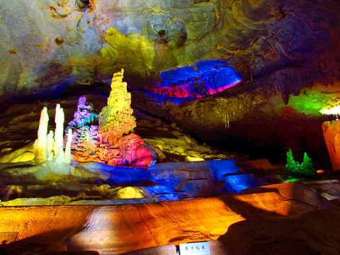 百魔洞中最为壮观的是那个100多米高,几百米宽、1000多米长的大殿堂内,几十个70至80米高、3至5米直径的钟乳石柱,构成庞大的石塔群,挺拔高耸,雄伟壮丽,让人惊叹不已。加上洞中雾气缭绕,变幻无穷,更使这个巍巍景观显得诡秘多姿。这些巨大的钟乳石塔,是经过几亿年岩溶发育的结晶,实属“天下之最”。