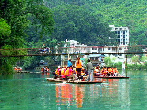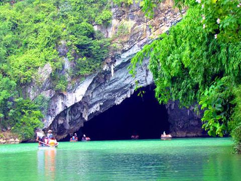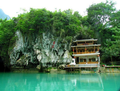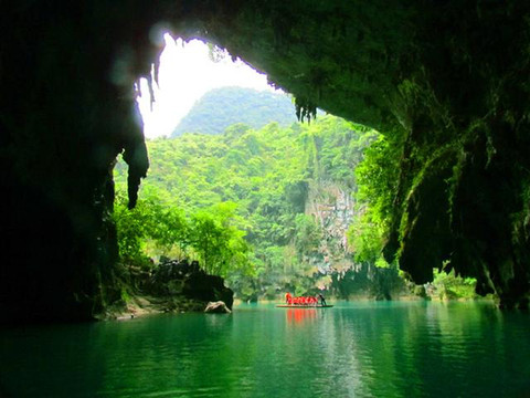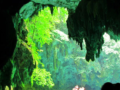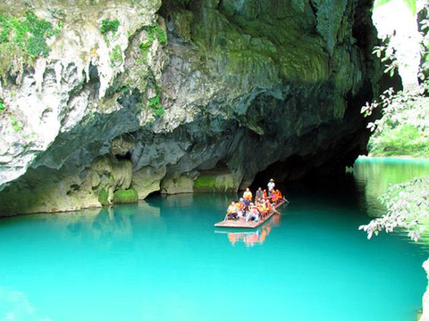 离开长寿水晶宫来到位于巴马甲篆乡烈屯西北面的漠斋山下的百鸟岩,这里也叫龙虎洞。因洞内燕子栖集,蝙蝠掠飞,又名百鸟洞。来这里其实主要是在景区中被称为“水波天窗”的长河里泛舟游览。
