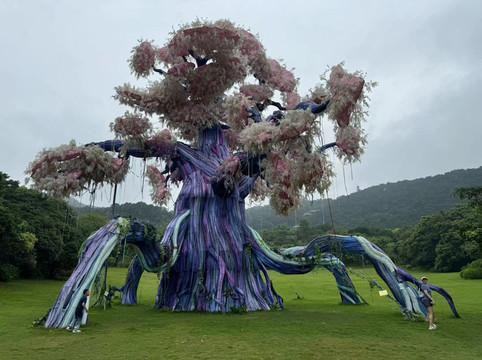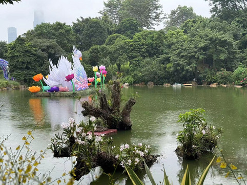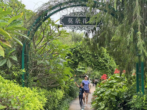 昨天还只是阴天的南宁下起了毛毛细雨。时断时续的小雨多少影响了人们出行的兴致,因此青秀山的游客不多。入园时,儿子看到了广告片上的昆虫世界,非要去那边玩。后来才知道,这是为下周开办的夜市活动准备的展区,当时还未开放。一进公园便看到了小火车,十元一人,可以单程前往东南西三个方向某一景点。我没多想,便买了去东门的票,因为那里有莫奈花园和儿童乐园,想必太太和儿子应该会喜欢。