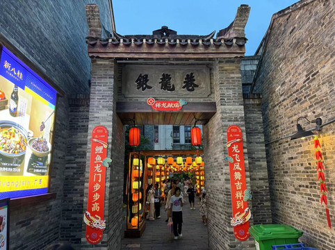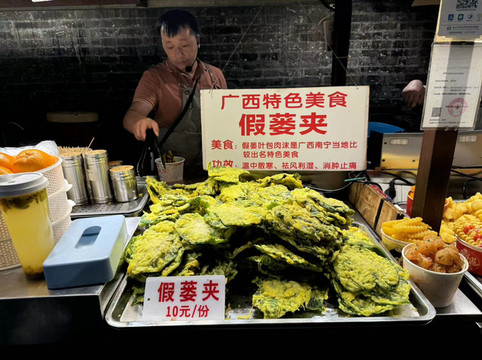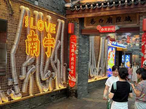 一觉醒来,在见证了巴黎奥运会中国首金后,我们终于出门,来到三街两巷。这是个集古建筑与当代网红元素合二为一的步行街,晚上还有夜市。我们在路边花十元买了三盒菠萝蜜(广州十元一盒),然后进入一个叫水帘洞的网红商店。儿子很喜欢这里,因为可以买到很多玩具。随后,我们便开始在夜市开启了逛吃模式,DQ的冰激凌,当地小吃假蒌夹,一盒炸薯条,再加上若干杯十元的柠檬茶(这似乎是南宁统一价),这就是我们的晚餐。