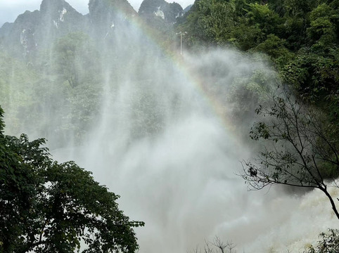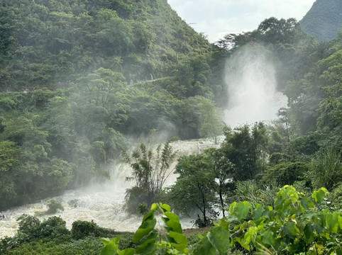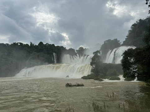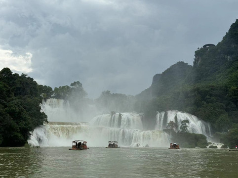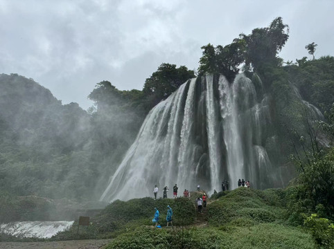 话不多说,先来一组照片,吸引一下大家的眼球吧。(略有些遗憾的是,我们来广西这周每天都在下雨,老天送我们丰水的瀑布,却拿走了青山碧水和蓝天白云,所以照片黑乎乎的不太好看。)