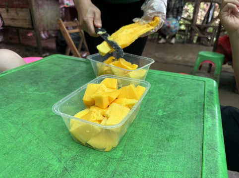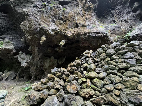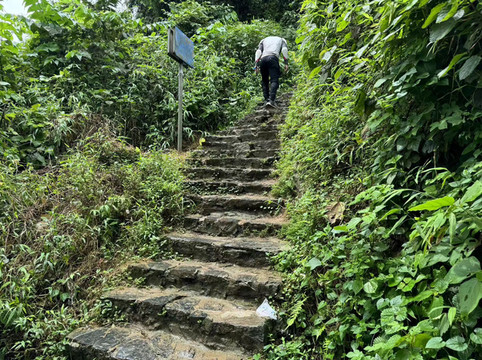 回程先走一段原路,但在石洞中会走不同的路,穿过岩洞来到第二条峡谷念八峡(第一条是通灵峡)。石洞是个典型的喀斯特岩洞,不算大,但也布满了各种钟乳石,还看到了传说中的古代悬棺。儿子的心思却扑在了无花果上,又买了几个吃个痛快。此时天降大雨,恰好路边有人摆摊卖凉粉水果,我们便在这里喝碗凉粉,吃个芒果歇歇脚。这里的芒果又大又便宜,二十块钱一个,两盒装不下一个芒果的果肉,而且是当地人一步步挑上山的。我们吃完水果,多买了一个大芒果带回去吃。正好雨停了,我们便走出景区。不远处有十元一人的接驳车,我们没坐,却不成想后面还有很长一段上山的路,走到出口时已经气喘吁吁。所以,通灵大峡谷的摆渡车是推荐大家买票乘坐的。