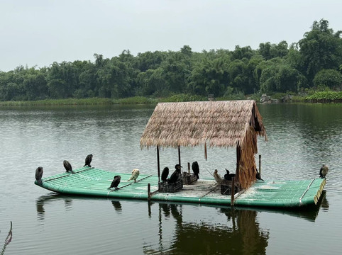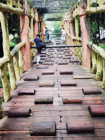 没错,儿子真的喜欢。一下小火车,他便一头扎进儿童乐园,并拿出充沛的精力和体力完成一段攀爬项目,还拉着他妈妈一起玩,可把老妈累的够呛。(带娃的同学请注意,来青秀山坐东线小火车可以考虑早一站下车,除非你就是为了让娃来放电。)儿童乐园旁边的竹林中,我们看到了许多没见过的竹子,还有几只鱼鹰静静地站在船上看着为数不多的游人。此时已经过了正午,而青秀山里没有正儿八经吃午饭的地方,于是我们只好在公园里的小卖部买碗方便面充饥。