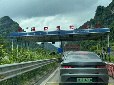 骑车两个半小时,花了120元。明仕田园给我的感觉还不错,挎斗小电驴也让我有了新的驾驶经历。我们赶紧驱车前往今天最重要的景点,德天瀑布。我依然选择了走国道,沿途欣赏路边的风景,并享受着看风景的心情。由于崇左临近边境,而德天瀑布则是中越边境线上的景点,因此我们也开车路过了边防检查站。边检的流程很简单,摇下车窗对着机器来个人脸识别,通过后就放行上路。