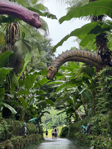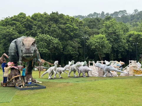 回到了北门,下车后不远处便是兰园。我们来这里不仅仅是看这里的兰花,而且这里有儿子感兴趣的另一处景点:恐龙乐园。果然,没走几步我们就听到了恐龙的叫声。尽管这些恐龙跟我们没能看到的昆虫一样,也是为了市民夜市准备,甚至在草坪上还有不少刚刚运到公园包裹的严严实实的恐龙模型,但这不妨唤醒曾经是恐龙粉的儿子对早年的回忆。儿子跑着,笑着,叫着,开心的玩了很久。