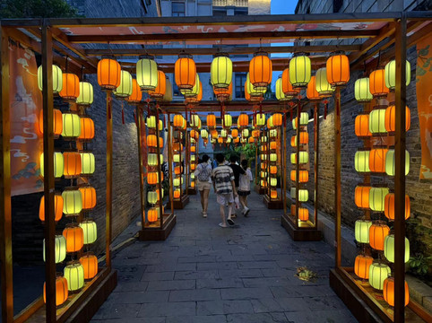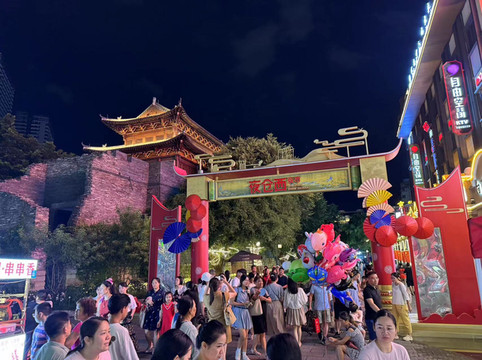 在一家茶馆短暂休息后,我们步行前往一旁的邕江看夜景。儿子被路边打气球的小摊所吸引,而路旁边也有一座始建于宋朝,两年前刚刚复建的仓西门。邕江一侧,沿路边走上台阶,还有座民生广场水漾集市。这里有小商品购物区,饮食区,还有好多年没见过的相亲角。不远处的酒吧,传来悦耳的弹唱。一侧的舞台上,许多舞者在不定期的展示自己free style的街舞,让儿子津津有味的看了很久。