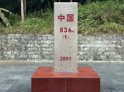 我们坐上竹筏,亲近瀑布,近距离去感受这一份震撼。此时正值夏季丰水期,正是瀑布水量最足的时候。竹筏距离瀑布还有很长一段距离,瀑布的水花已经迫不及待的飞到我们面前,让我们的眼镜上形成一层水雾。竹筏左侧停靠点是越南,带护照的话还可以办理出境游去越南那边溜达一圈。我们对越南没啥兴趣,便跟随竹筏从右侧登陆。这里不但有德天瀑布的观景台,还有庄严的836号界碑。