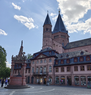 美因茨是德国莱茵兰-普法尔茨州的首府和最大城市,位于莱茵河左岸,正对美因河注入莱茵河的入口处。美因茨是政教古都,在神圣罗马帝国时代,美因茨大主教身兼帝国七大选帝侯之一,驻跸在此,政治与宗教势力权倾一时。