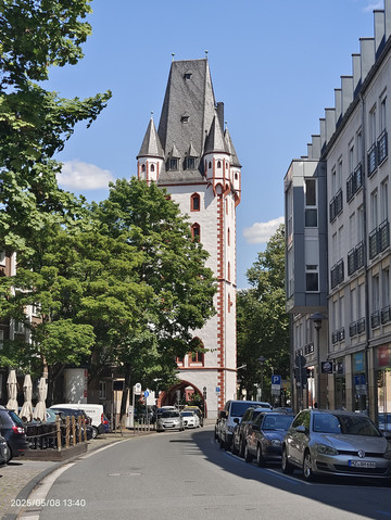 中途路过这个地标建筑,是中世纪美茵兹建造防御工事的六层石制城门楼,建于 1240 年左右,有瞭望塔功能。