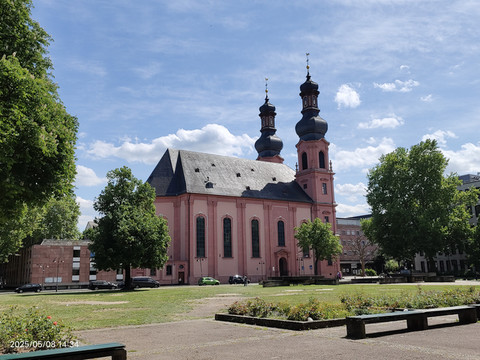 美因茨圣彼得教堂(或称圣彼得教堂)是一座重要的洛可可式教堂。创建于10世纪,这座教堂最初是一座学院教堂和修道院, 现存的建筑建于1749年至1756年间,为巴洛克风格,拥有一个三部分大厅和两座洋葱形穹顶塔楼。这座教堂曾在战争中遭到摧毁,包括三十年战争期间瑞典入侵;在1813年法国占领期间被用作马厩;直到1918年,它一直被用作普鲁士军事基地。第二战期间教堂遭受重创,1952年至1989年间,教堂经历了多个阶段的修复,如今,它仍然是当地教会仍在使用的教堂。