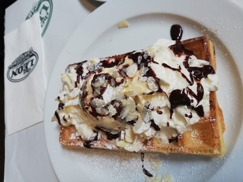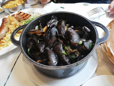 比利时的美食,图一华夫饼,大家都很熟悉吧。下面这个海鲜很有名,这个青口味道不错,推荐,还有就是这家餐厅也不错,店名忘记了。