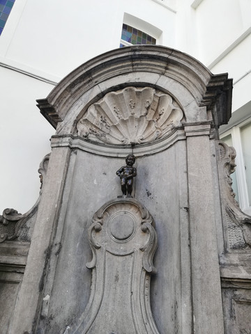 小于连,又译为撒尿小童像、尿尿小童,是比利时首都布鲁塞尔的市标。这座闻名于世的小男孩铜像是一座落于市中心步行区的雕像及喷水池。这个五岁小孩身材的雕像不大,但有将近四百年的历史。 关于小童有好几种版本的传说,大概是讲一个叫于连的男孩,他撒尿的时候,无意中拯救了一座城市,谁也不知道这个故事的真假, 1619年,雕刻家杰罗姆·杜奎斯诺伊制作了于连的铜像保存至今。 400年的历史人们没有忘记他,他反而成为了布鲁塞尔的一大标志,并且经常衣着不同风格的时装,显得十分时髦。我们去的那几天没有赶上他盛装,但是我们返程那天是比利时的国庆日,相信那天小于连应该会穿上漂亮的衣服。