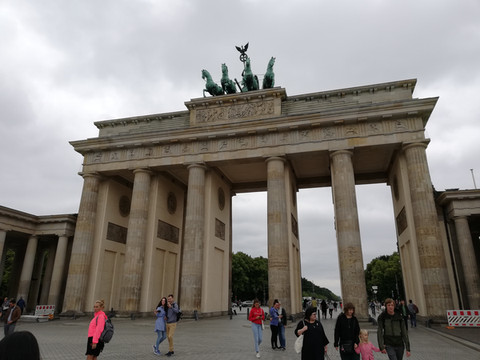 勃兰登堡门是柏林的标志,也是德国的国家标志。这座建成于1791年的新古典主义风格的砂岩建筑,以雅典卫城城门为蓝本,门顶上是张开翅膀的胜利女神驾驶四轮马车的铜像,女神手中的权杖上,有橡树花环、铁十字勋章和展翅的鹰鹫,这一切都象征着战争的胜利。勃兰登堡门正面朝东,其以东的区域是柏林老城的核心所在, 这也是唯一仅存的柏林城门。勃兰登堡门立于此地的二百余年,见证了德国历史的兴衰。