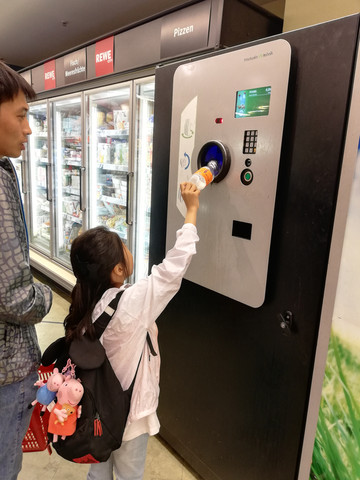大型的超市才有塑料瓶回收的机器,我们每次欧洲出行都会把塑料瓶保留下来,看到这样的超市我们就把它们卖掉,也是告诉孩子如何保护自然,如何变废为宝。