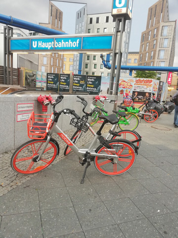 在柏林看见了祖国的摩拜,必须拍照留念,哈哈