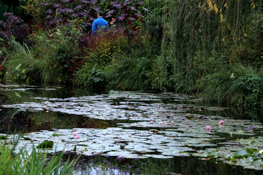 淡黄色的光透过树丛照进来,让人不得不不想起,曾经在无数次,莫奈就在这里,不管刮风下雨,还是阳光灿烂;无论是白天还是傍晚,莫奈总是坐在池塘边,观察自然,感受光线,用画笔记录下来。他的画经常是无题的,他说:“重要的不是主题,而是画家自己的观察和感受。”