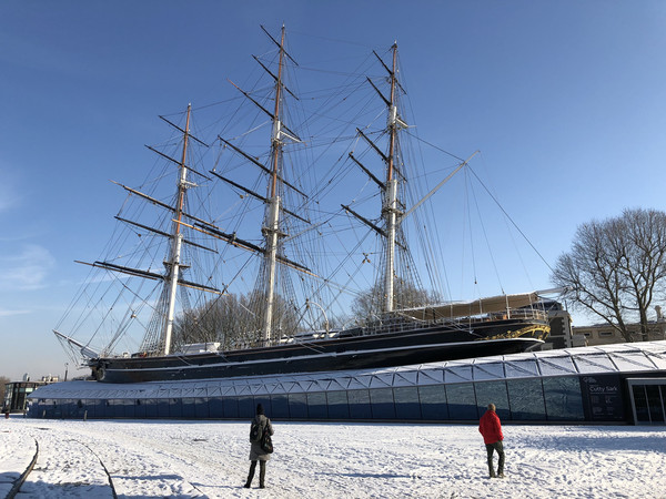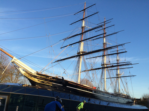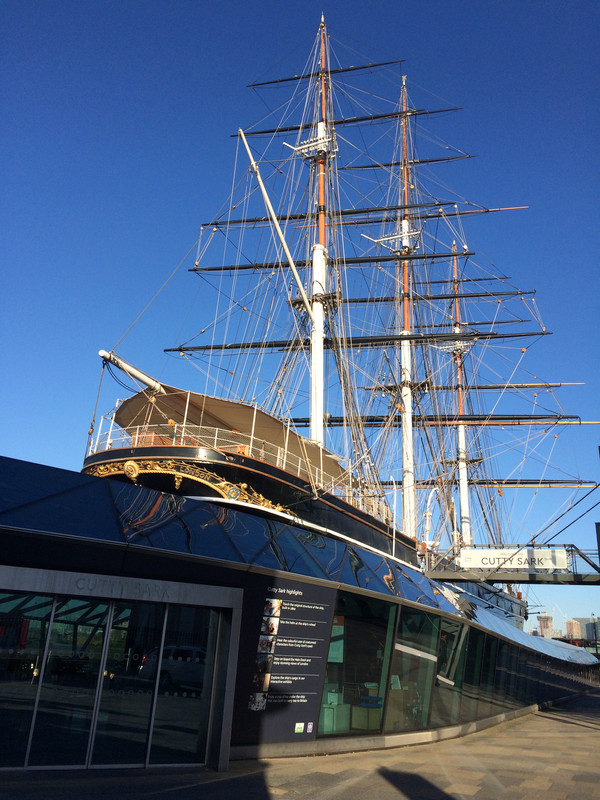 在码头上就可看到长64.7米,当年闻名遐迩的帆船卡蒂萨克”号(Cutty Sark),这曾经是世界帆船史上航行速度最快、装饰最美丽的一艘船,被称做“顺风威士忌”,代表着帆船建造技术的顶峰,1869年在苏格兰建造。是世界上最后一艘仍存在的古老的商用帆船,从1870年开始,连续7年为东印度公司从中国运送茶叶,在1885至1895年期间往来澳大利亚和英国运送羊毛,后被蒸汽机淘汰。1895年以1250英镑卖给了葡萄牙人,1922年又被人买走,以3750英镑买走,1938年买主死后由现在的皇家海军学院买下,1951年起存放到这个专门为它修建的干船坞上,成为一座博物馆。可以买票进去参观。里面展示着许多当年英勇的航海史料,可以对19世纪的海上贸易史有粗浅的认识,船内另一个有趣收藏是各种多样造型的船头雕像,有英勇威武、也有诗意浪漫,不过都同样地守护著漂泊海上的所有船只。