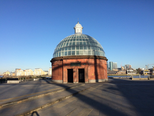 下面这个圆顶建筑物是过河隧道的入口,里面有电梯直达隧道,可以骑自行车或步行过到对面岛上,然后就能走到金融城(金丝雀码头)