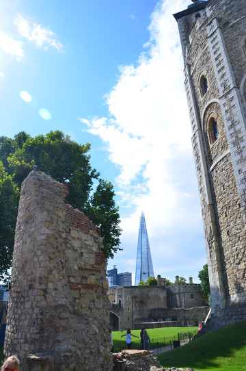 图 穿越千年的时光隧道:1078年建成的伦敦塔高30米,为当时伦敦最高;2013年建成的碎片大厦高310米,为当今英国和欧洲最高。