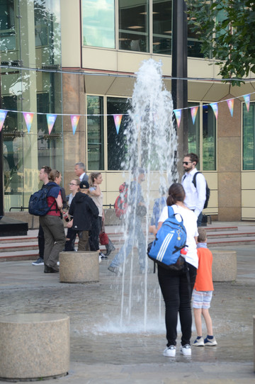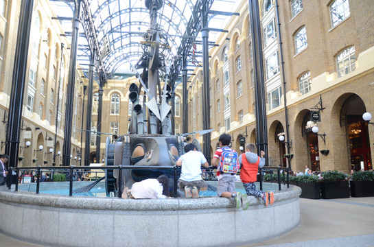 图 过道处名为 “航海家” 的喷泉雕塑,据说会活动,吸引了众多游客。