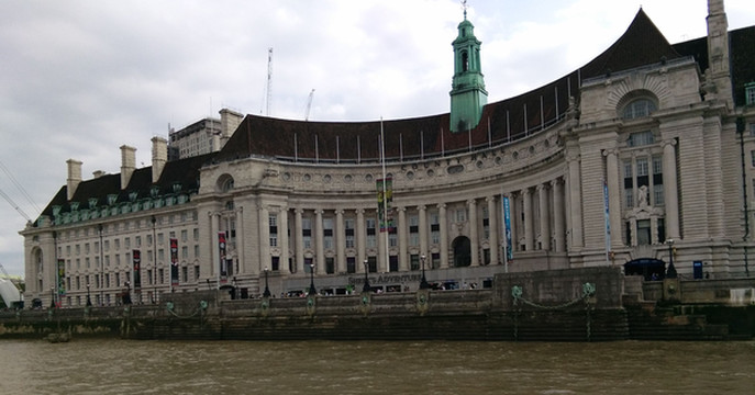 图 从伦敦塔远眺泰晤士河,中部圆形建筑为市政厅大厦。