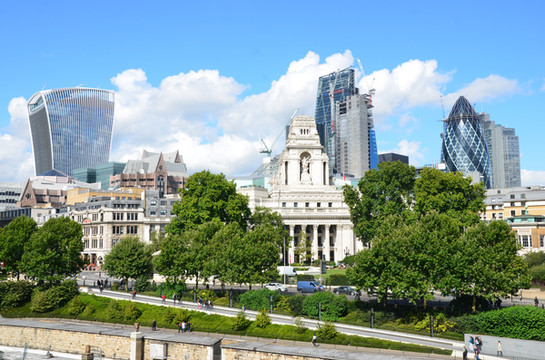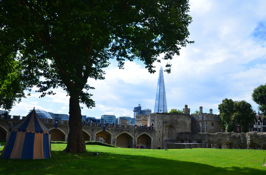 图 伦敦塔城墙内外,绿野与晴空、古典与现代完美融合,宛若仙景。