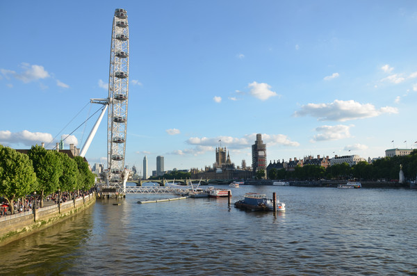 图 顺着岸边往上游走去,便可看到威斯敏斯特桥南侧的伦敦眼和桥北端的议会大厦、大本钟等著名景点。