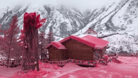 “粉色雪”红与白交相辉映,让整个世界都冒粉泡泡,秒杀无数少女心,表白求婚成功率100%,简直就是情侣必来的冬日度假胜地。
