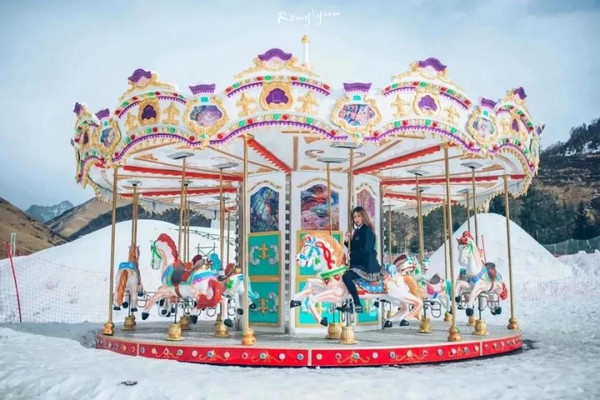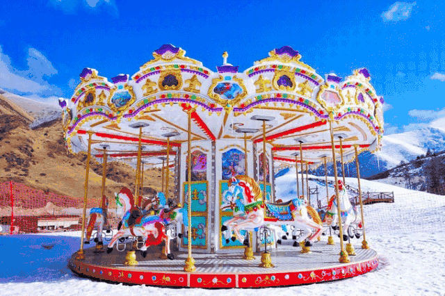 在海拔3000多米的高原的雪地里,你坐过旋转木马吗?这也许是我见过海拔最高的旋转木马了。