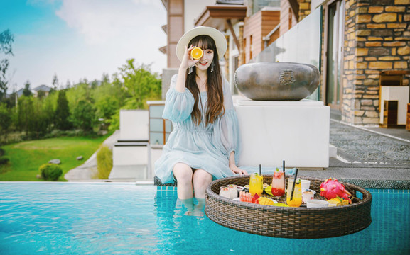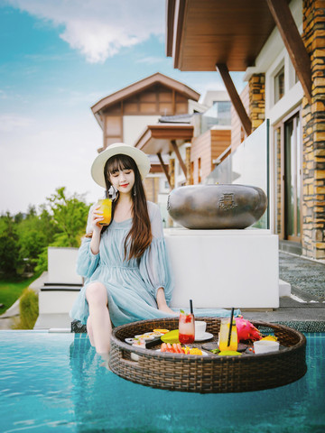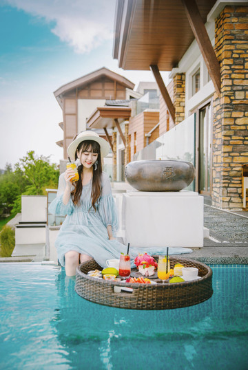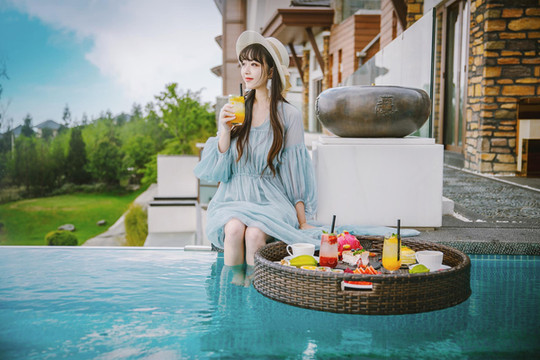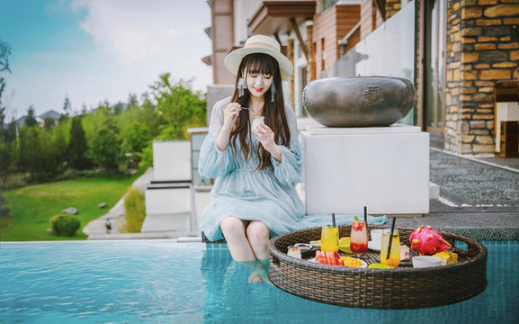 只可惜下午回来的时候天气变阴变冷,又不忍错过这场网红下午茶,便还是坐在了泳池边拍了几张照片。