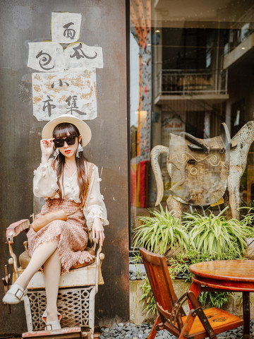 一路往里走能看到面包瓜小市集,复古的门头,做旧的座椅,超酷的机车,让这里瞬间变身成一个极具艺术气息的打卡地。