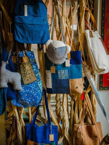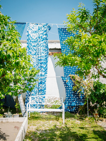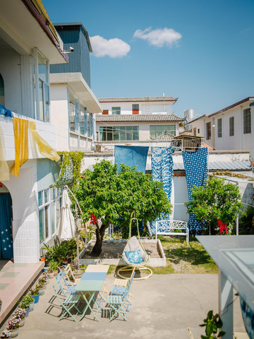 小镇不大,随处走走就能看到蓝绪扎染,进入院子就可以看到大大小小的扎染布,蓝白相间的颜色深深浅浅,透出一股动人的神韵,要是有兴趣的话,还可以在这里自己制作扎染哦!