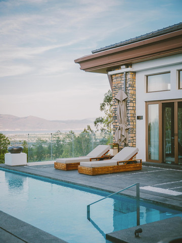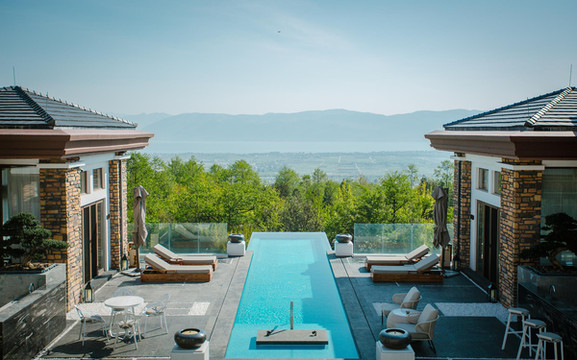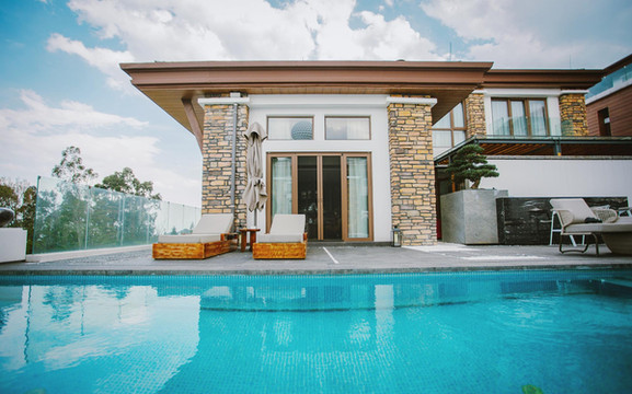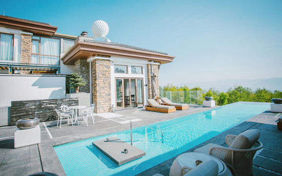 海纳尔的无边恒温泳池采用360°全景设计,构架全景视野。高悬在绿油油的高尔夫球场,仿佛点缀在天地间的一块蓝宝石。
