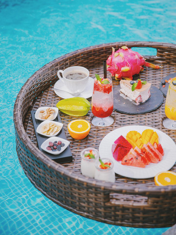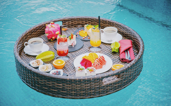 之前看了很多刷爆朋友圈的“巴厘岛漂浮早餐/下午茶”,每次去海岛都想体验一番却总是错过,没想到大理居然也有悬浮下午茶,这也是这家酒店最初吸引我的地方!
