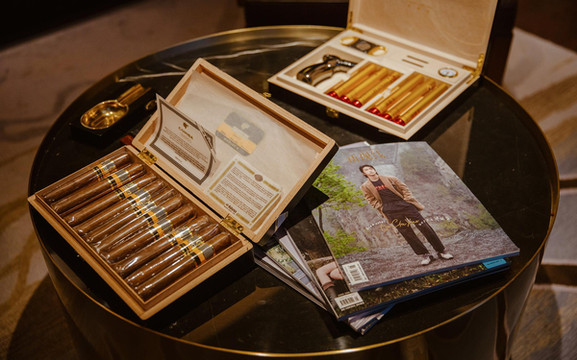 听管家介绍才知道,这里的红酒吧集结了世界知名酒庄名酒的红酒,雪茄吧里的雪茄很多也是老板的私藏,私密典雅,平时也会对游客开放,是每一位商务人士聊天的理想之所。