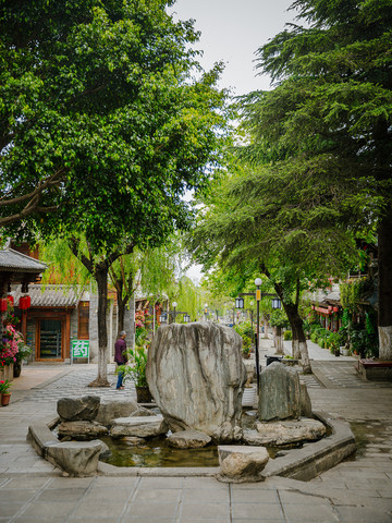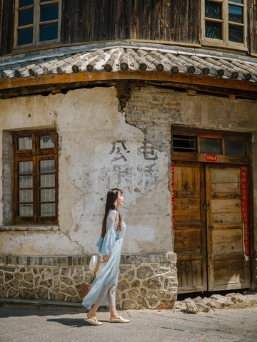 继续往前,漫步在古镇里,这里保留下来了很多明清时期的建筑,基本形式有“一坊一耳”、“一坊两耳”、“三坊一照壁”、“四合五天井”等的古宅,近距离的置身于周边传统的白族民居,更是能让人近距离的感受当地白族人的生活,路过幽长的被岁月打磨的青石板小路,清静又淳朴。