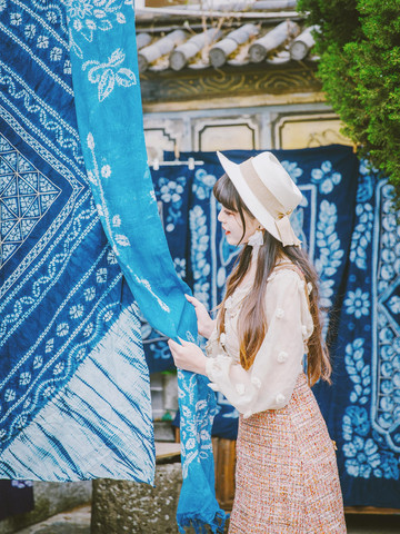 虽说大理的周城才是扎染的聚集地,若你们来大理的时间有限,不妨去看看周边喜洲古镇里的蓝绪扎染吧。