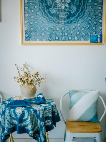 置于蓝续扎染布里的你,或许也有种莫名的错觉。