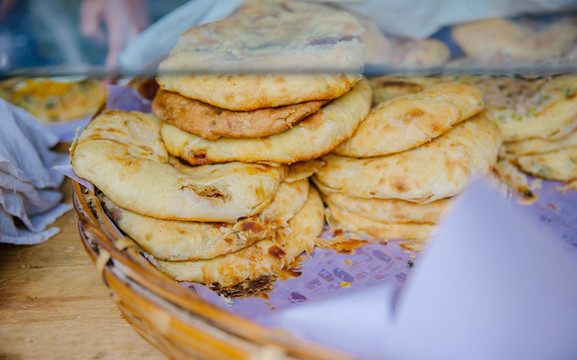 来喜洲,喜洲粑粑一定要安排上,外形像极了中式的披萨,喜洲粑粑的口味有甜、咸两种,鲜肉和玫瑰酱两种口味都可以试一试,小伙伴们早就做好了攻略打卡了喜洲的老字号:《和尚破酥粑粑》,味道确实不错哈哈。