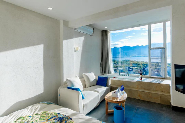 复式结构加上自带观景台使得空间更加开阔,坐在观景台上,放空大脑,听着洱海的低吟,看云卷云舒不停变换。面朝洱海,春暖花开,灵魂仿佛变得轻盈起来,吐纳之间,身心都得到了极大的净化。