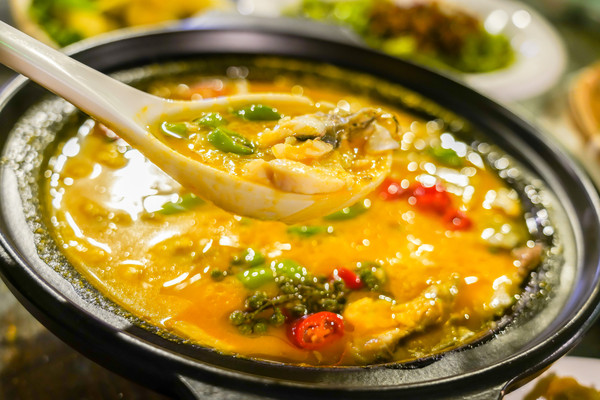招牌百香果酸辣鱼,同样的是招牌必点菜,百香果汤底,好喝又开胃,酸酸辣辣,鱼肉超级嫩,鲜香嫩滑。