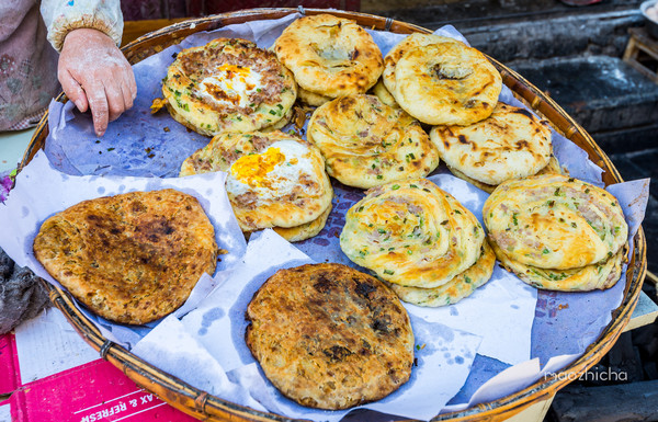 喜洲粑粑可以说是喜洲的最大代言“人”了,来到这里一定要吃一个,虽然卖相一般,但制作工艺还是很讲究的,制时皆用上下两层炭火,上层炭火为猛火,下层炭火为文火,在做好的面胚上刷上猪油之后入锅烘焙,在烤制过程中繁复刷几次油脂,烤香直至烤酥。喜洲粑粑外皮香酥而内在绵软,所以会看到在喜洲古镇中,每家店都是写的“破酥粑粑”,一口下去,酥脆的外皮下满满的花香,实在是太好吃了。