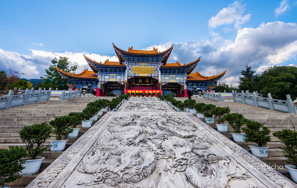 游览三塔最佳的方式,是进入景区后,现在乘坐电瓶车到达山顶的重点,也就是崇圣寺的大雄宝殿所在的位置,然后再沿着寺中的台阶慢慢向下游览,最后到达三塔。