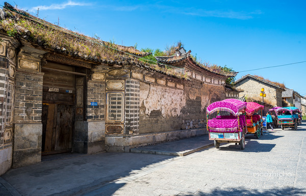 这里的民居大多是大理特色的土库房,檐口以下皆用条石和卵石堆砌而成;现在还有40多间土库式土房仍然保留着曾经的容颜,步行期间,斑驳陈旧的土墙、茅草舞动的瓦顶、光滑圆润的石地板,历史的沧桑在这里留下了深深地印记,仿佛能看到当年这里来来往往的马匹,托着古道两边不同民族的希望!