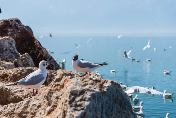 海鸥从每年的11月份来到这里,到第二年的3月初离开,挖色镇的海鸥主要集中在镇口和小普陀附近,它们似乎已经习惯了游人们的争相喂养,吃的不亦乐乎,漫天都是它们欢快的叫声,感染了周围的人们,心情马上也变得明亮起来。
